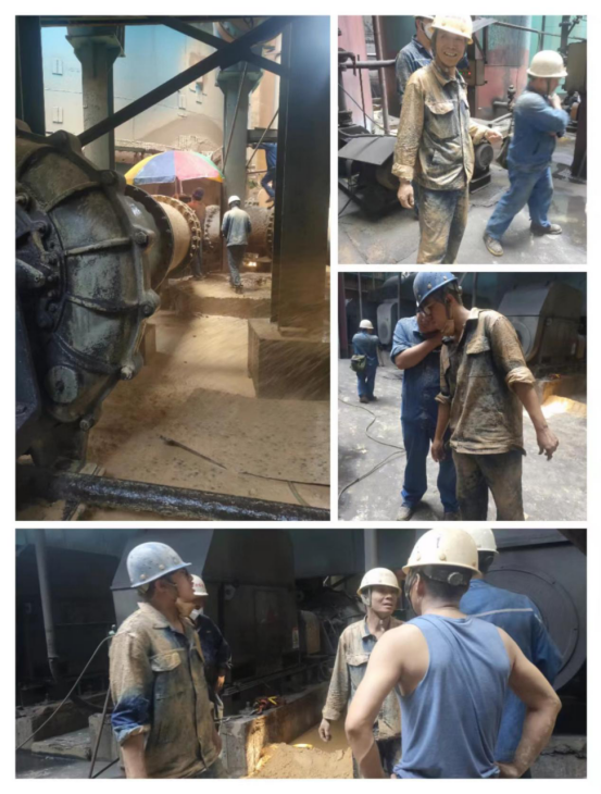 8月10日12:00左右,攀藍鼎2燒1#循環(huán)泵進口軟連接破裂,備用泵2#循環(huán)泵進口閥無法開啟投入使用,對生產(chǎn)運行造成嚴(yán)重風(fēng)險,如不能馬上消除故障,啟動備用2#泵,會導(dǎo)致出口SO2指標(biāo)不受控,致使前端減產(chǎn)或停產(chǎn)。故障就是指令,出現(xiàn)故障后生產(chǎn)部立即組織檢修班長何亮、副班長蘇仕國、生產(chǎn)班長鄭義現(xiàn)場制定搶修保產(chǎn)方案。